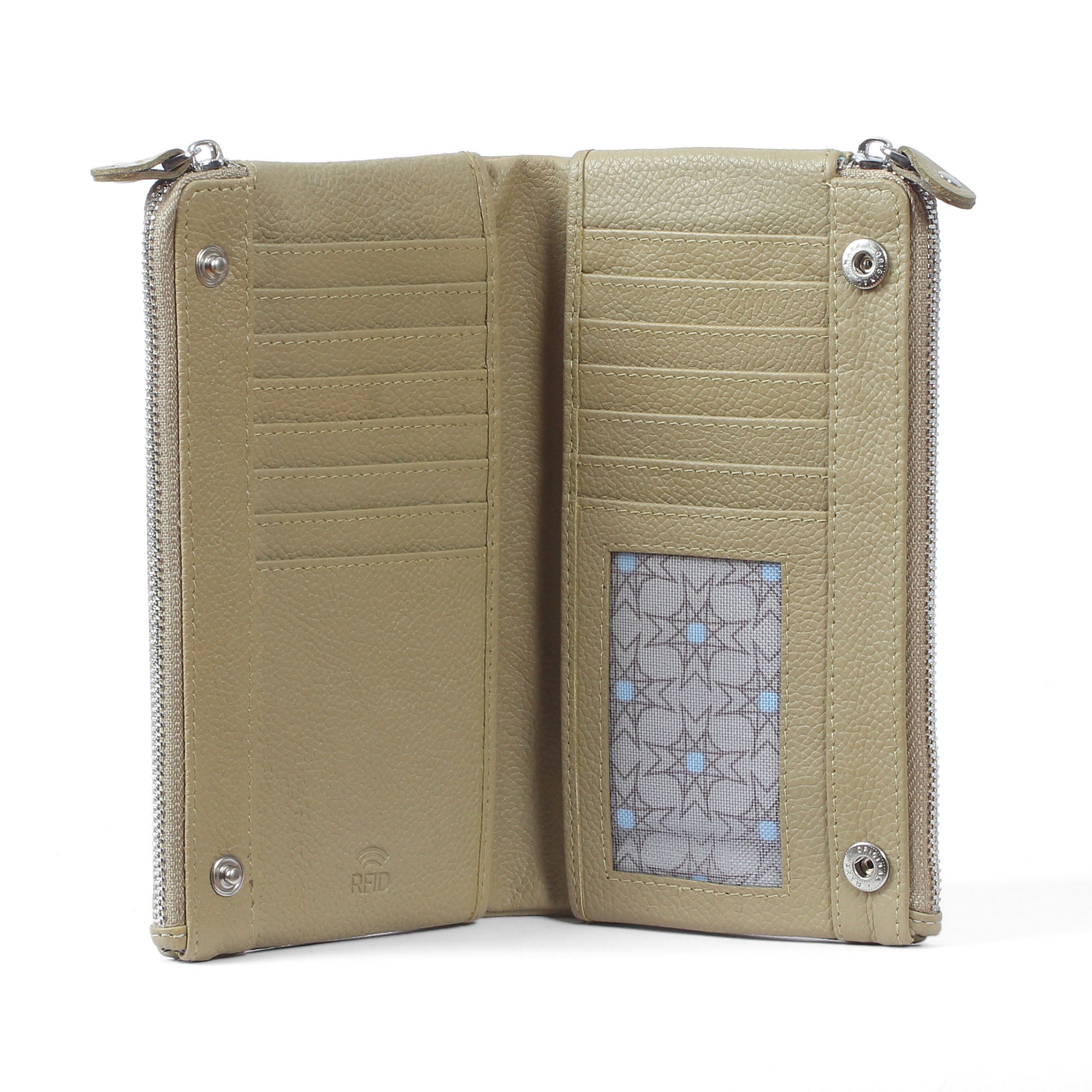 Kartenoptionen, Bargeld und Kassenbons - für alles ist gesorgt. Und das Beste: eine eingearbeitete RFID-Schutzfolie verhindert das unautorisierte Auslesen deiner privaten Kartendaten. Was willst du mehr?